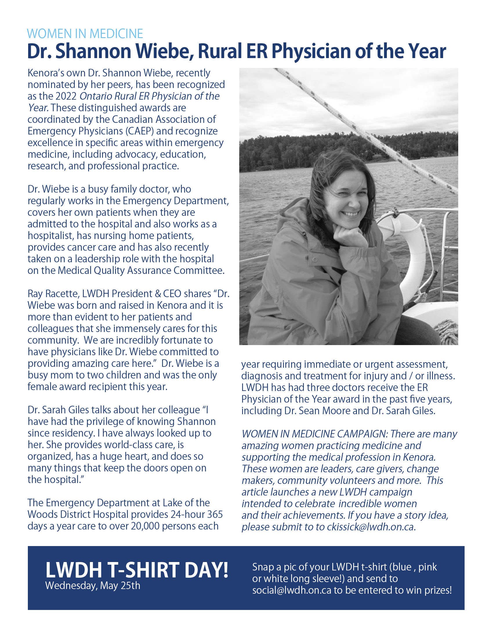 Lake of the Woods District Hospital is a 81-bed acute care hospital located in Kenora, Ontario on the shores of beautiful Lake of the Woods. LWDH is staffed by an incredibly dedicated team providing quality patient-centered care to residents of the City of Kenora, surrounding communities and the large seasonal population. LWDH is a fully accredited hospital under the national standards of Accreditation Canada.